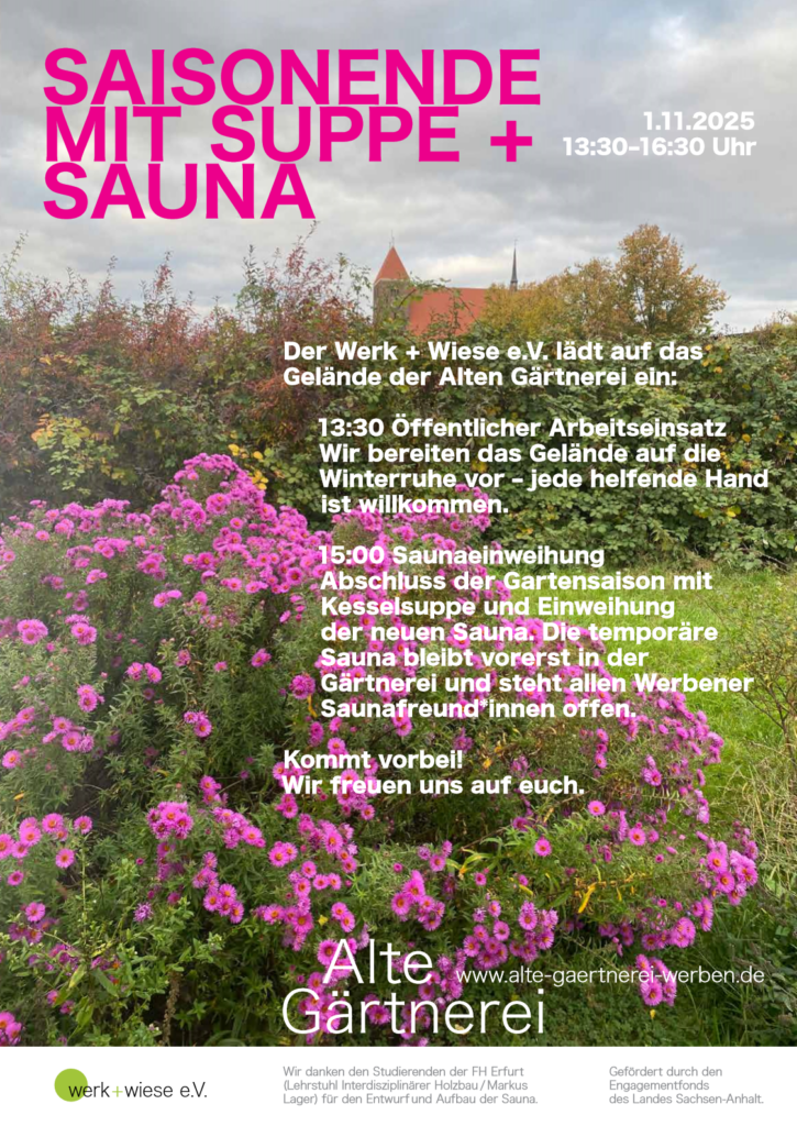• Sa, 4.10.2025, 14-16 Uhr (im Anschluss zum „Apfeltag“)