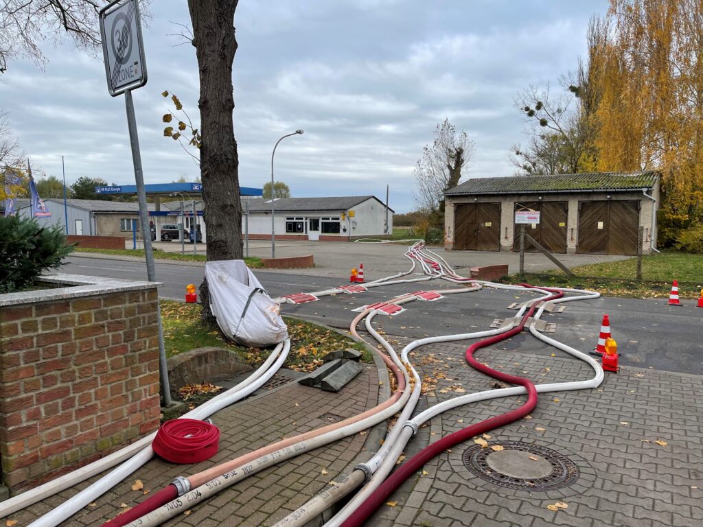 Bei Wartungsarbeiten kam es am Montag Nachmittag (03.11.25) im Tiefbrunnen, der die Badeanstalt versorgt, zu einer Havarie, der noch in der Nacht einen Großeinsatz von Feuerwehr, THW und anderen Spezialkräften auslöste. Mit hohen Druck schossen große Mengen Wasser aus dem artesischen Tiefbrunnen und hätten zu einer Überschwemmung in dem Bereich der Stadt führen können. Mit sofort eingesetzten Spezialpumpen und langen Schlauchstrecken konnte das Wasser in Gräben abgeführt werden. Zur Reparatur ist ein Spezialtaucher nötig.