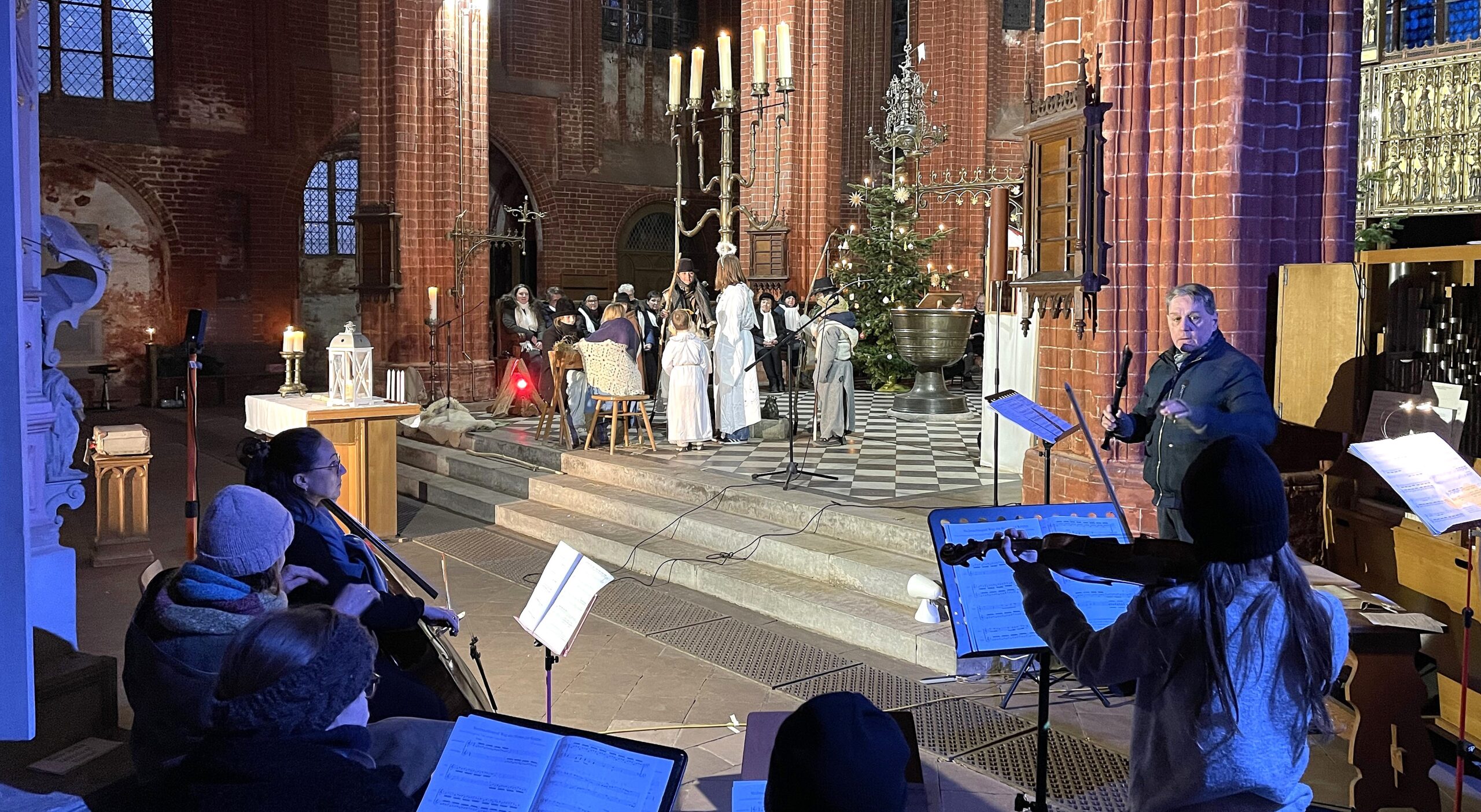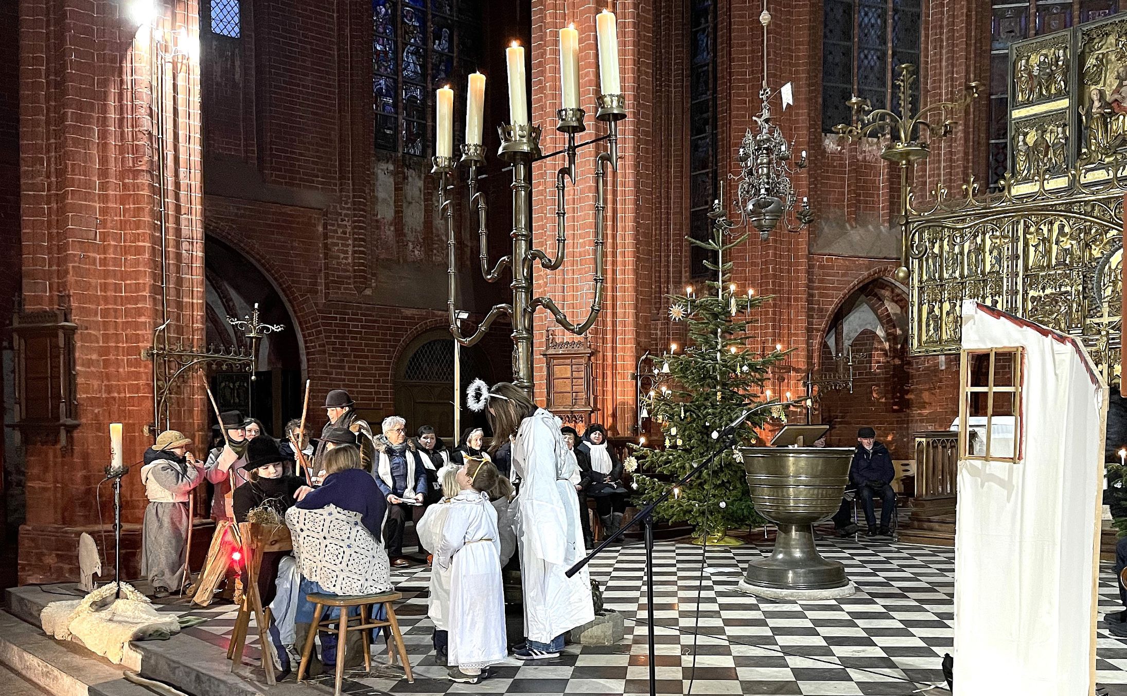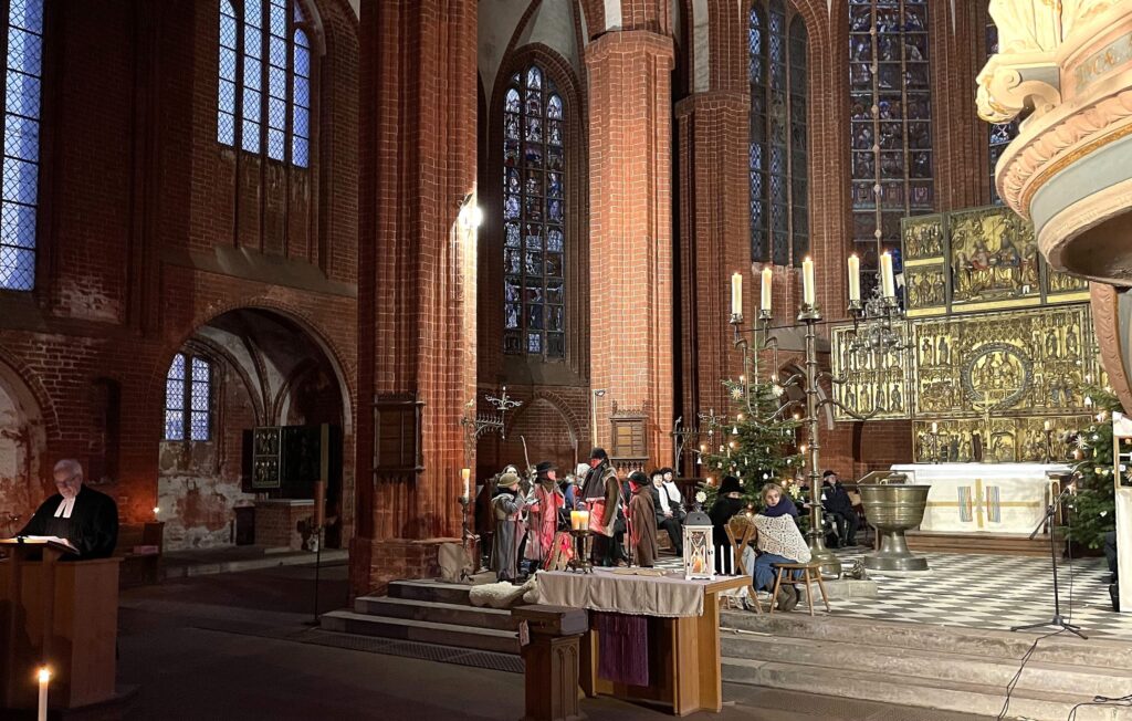 Am Heiligen Abend war die St. Johanniskirche in Werben gut gefüllt. Es kamen Besucher aus der ganzen Umgebung. Wie die letzten Jahre hat Pfarrer Krefis den Gottesdienst gehalten und in seiner Predigt Bezug auf das diesjährige Krippenspiel genommen. Musikalisch waren sowohl der Gemischte Chor als auch der Frauenchor "Cantus Ioannis" im Einsatz. Höhepunkt war ein Krippenspiel, welches von Jochen Großmann geschrieben wurde. Viele Kinder in allen Altersgruppen waren beteiligt und auch Instrumentalisten trugen zu einer weihnachtlichen Atmosphäre bei. Zwei schön geschmückte Weihnachtsbäume umrahmten den Hauptaltar und es brannten viele Kerzen.