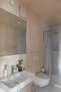 modernes Duschbad, Fahrräder können abgeschlossen eingestellt werden.