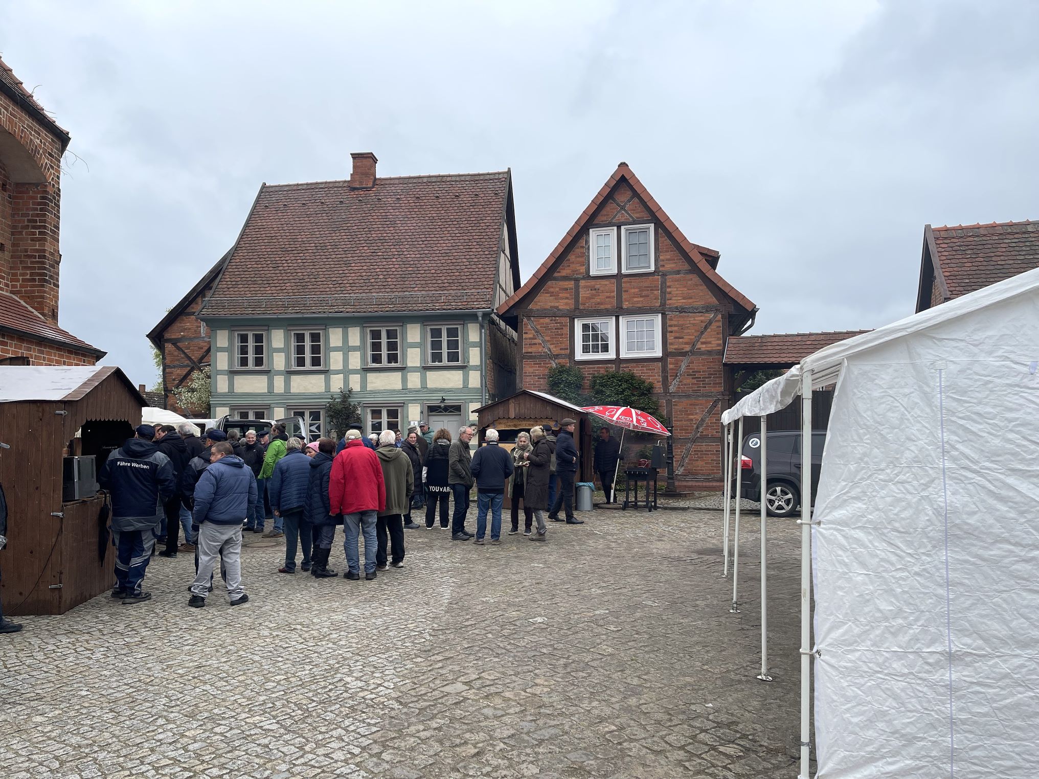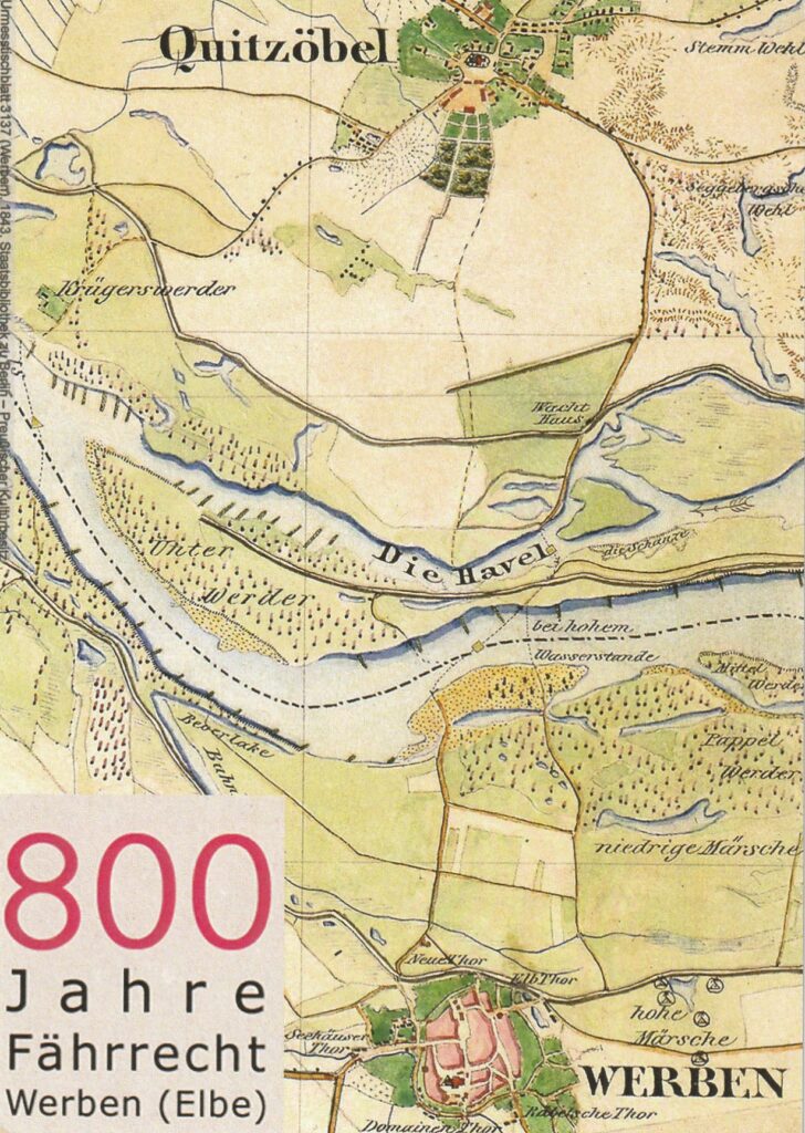 Am Nachmittag fanden die weiteren Feierlichkeiten in und vor der „Salzkirche“ statt, Musikalisch wurden die Werbener und Gäste von der Werbener Feuerwehrkapelle und dem Shantychor aus Wittenberge unterhalten. Die Stadt hatte Sekt spendiert. Werbener Vereine, Miteinander-Füreinander und der Hansesportbootverein, sowie das Kommandeurhaus, übernahmen den kulinarischen Teil mit Kaffee und Kuchen, Bratwurst und Bier. Der Kulturverein hatte eine Auflage von neu gefertigten Postkarten zum Thema „800 Jahre Fährrecht“ im Angebot.